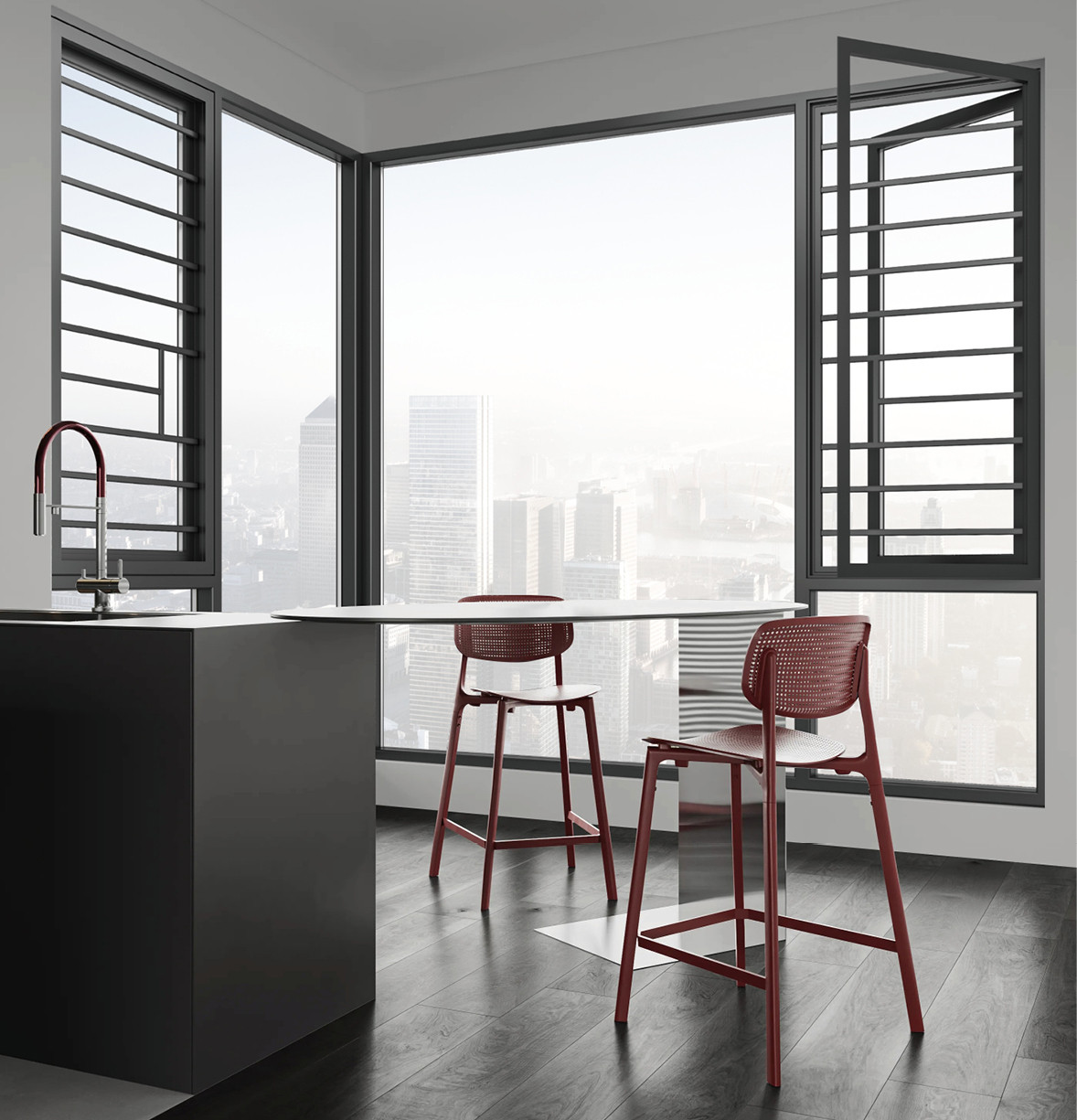 铝材壁厚2.0mm,螺丝受力部位3.0mm;明排式排水系统,排水量更大,避免倒灌;固玻/扇玻免打胶工艺,安装更方便;框扇注胶工艺,抗拉伸强度更高,框扇结构更稳固。
