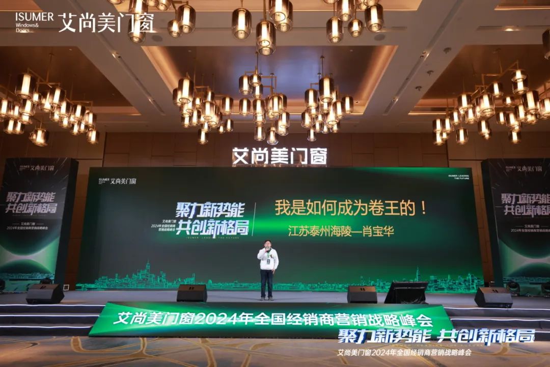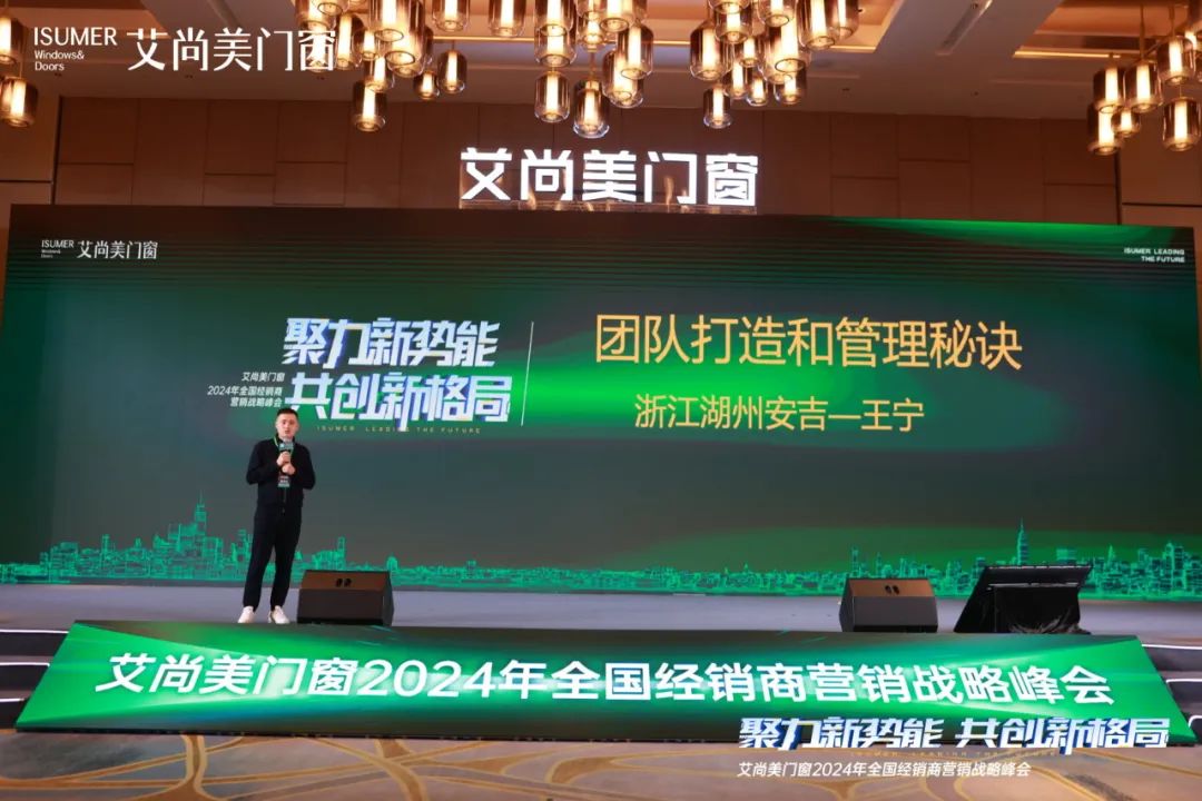 在本次峰会上,艾尚美门窗技术总监谭磊向我们介绍了艾尚美2024全新产品,展示艾尚美多场景、多产品解决房屋门窗需求;艾尚美副总经理汪建国详细介绍了艾尚美的生产服务,智能化生产与服务,展示艾尚美门窗生产硬实力;营销总监谢慧慧向经销商们分享了终端店面运营销售方式方法,为经销商提供了宝贵的思路和参考。