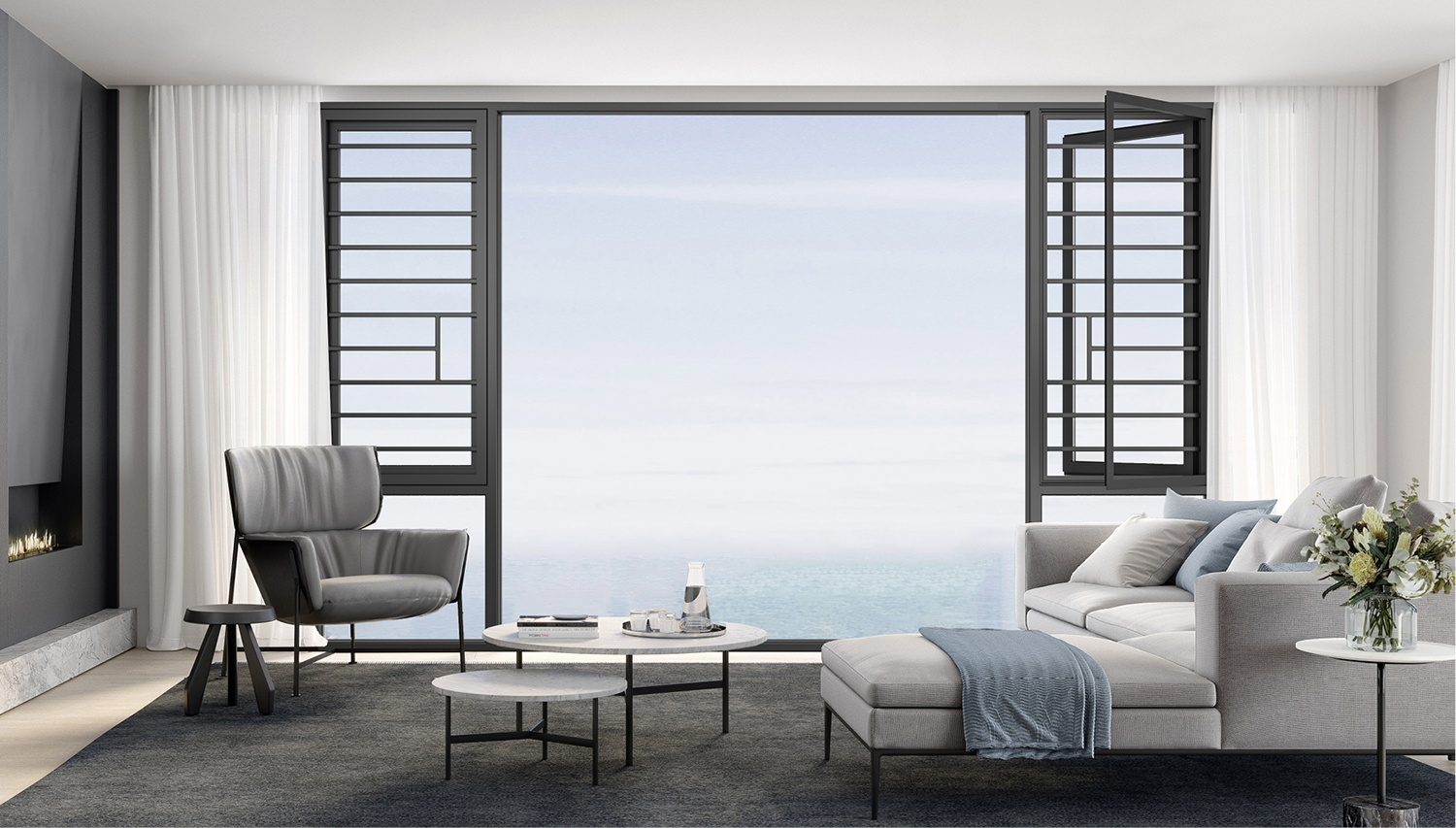 铝材壁厚2.0mm,螺丝受力部位3.0mm;明排式排水系统,排水量更大,避免倒灌;固玻/扇玻免打胶工艺,安装更方便;框扇注胶工艺,抗拉伸强度更高,框扇结构更稳固。