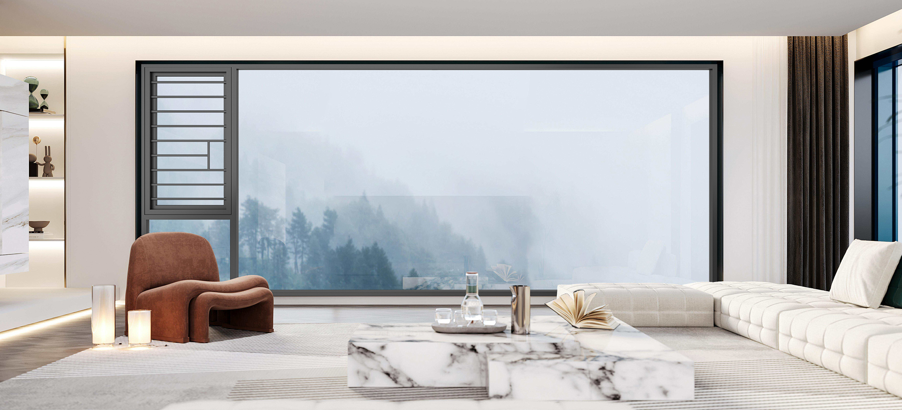 边框型材通厚3.0mm,外框更结实稳固;开启位配置一体式鸭嘴,连体折弯胶条; 等温线齐平,四道密封系统,气密性能高、隔音效果好;固玻/ 扇玻免打胶工艺,安装更方便。