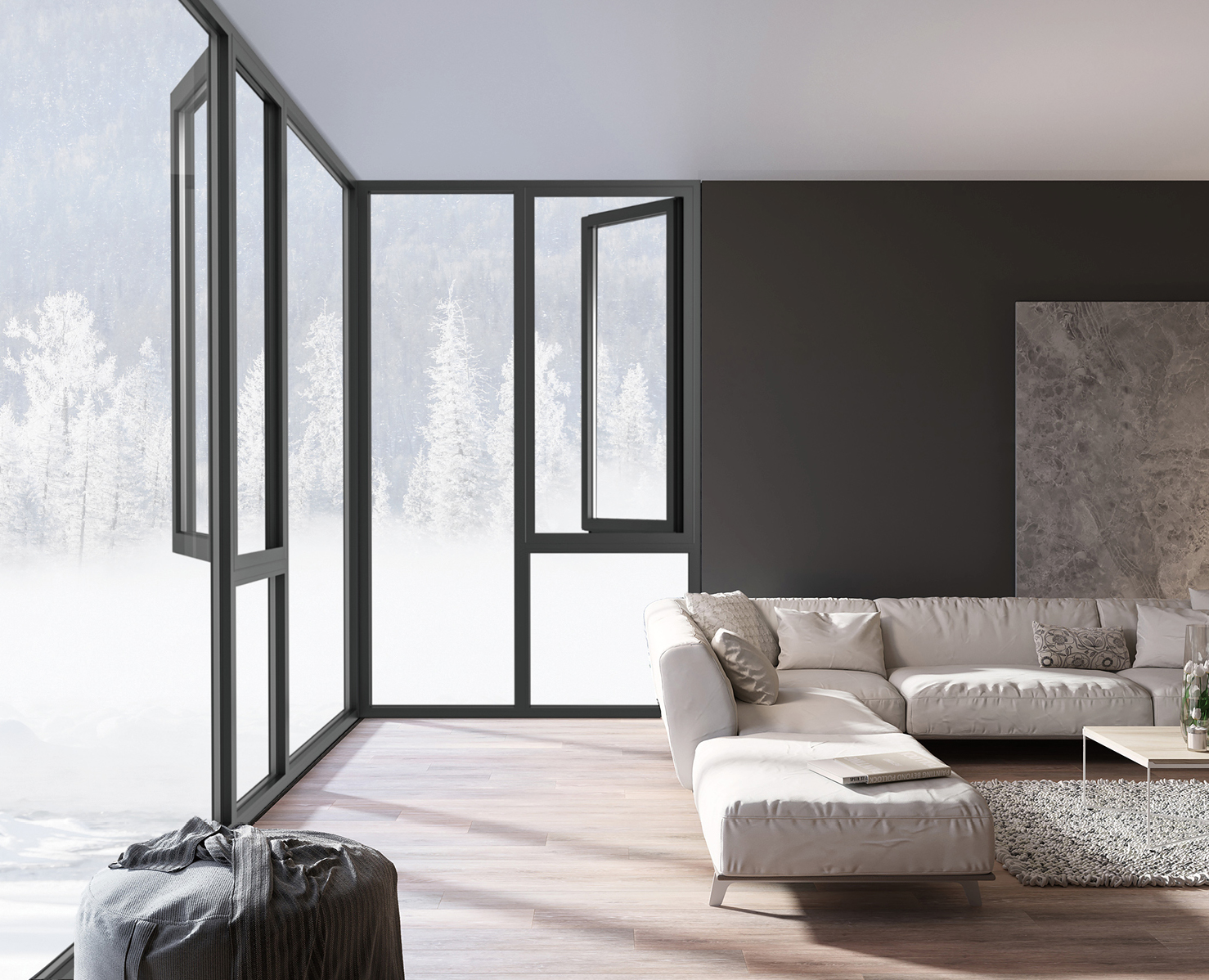 明排式排水系统,排水量更大,避免倒灌;固玻/扇玻免打胶工艺,安装更方便;可选“加强中柱”进一步提升边框稳固性;可做微通风,内开内到(门),玻璃护栏。